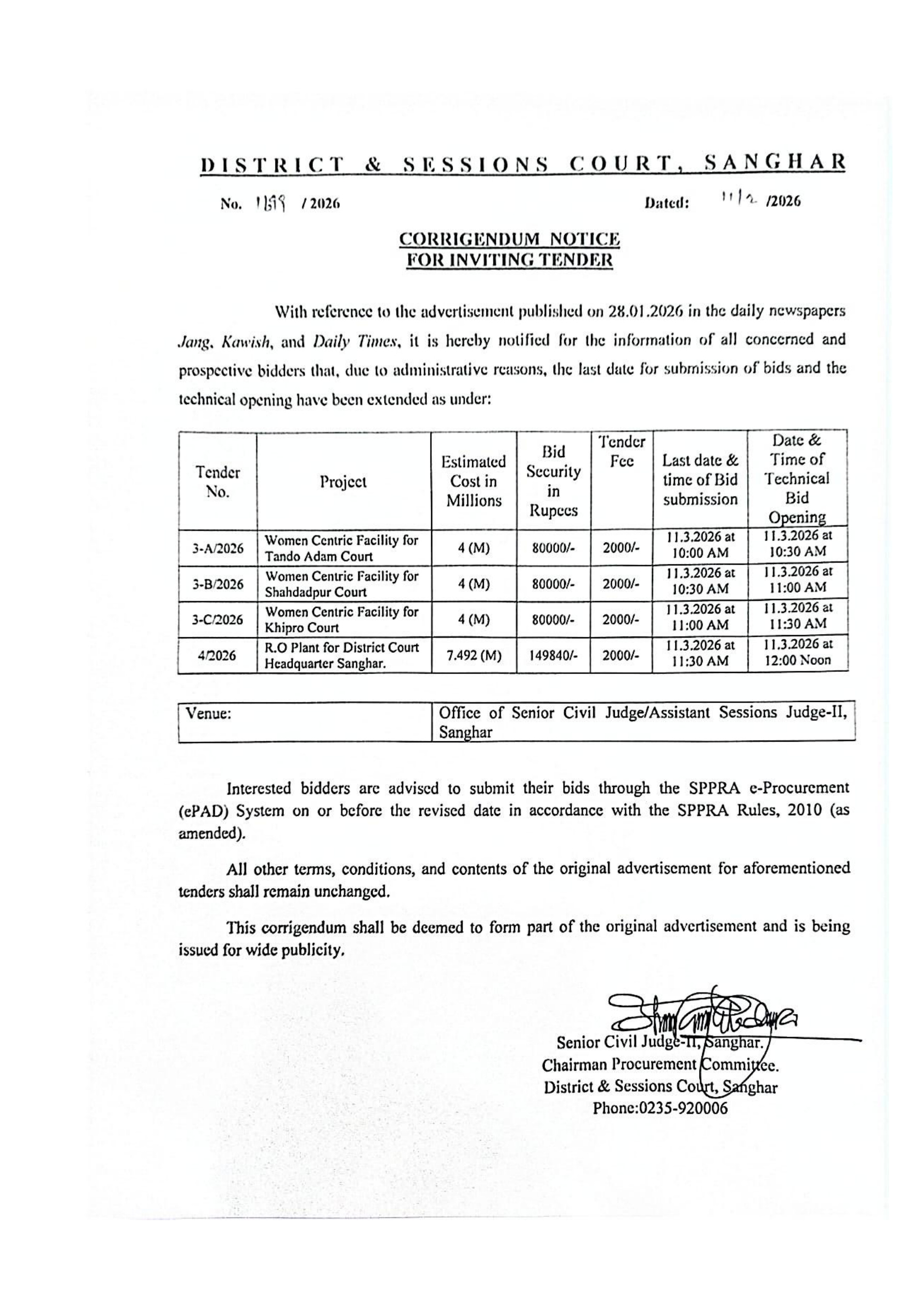 District & Sessions Court, Sanghar